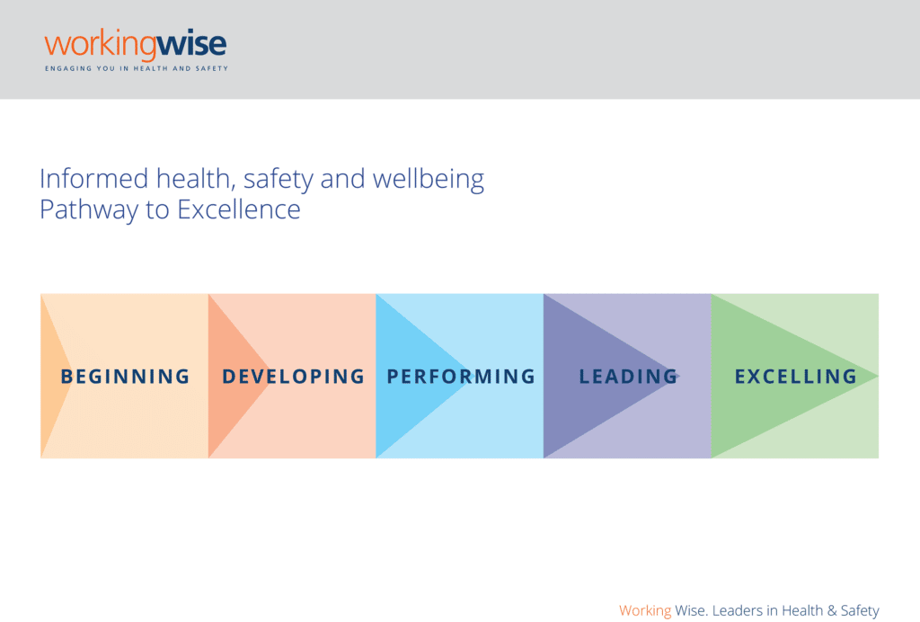 ENGAGING WORKPLACES >INFORMED H&S STRATEGY InformedHEALTH & SAFETY STRATEGY Strategic planning for health, safety and wellbeing is the key to improving performance and effectively managing risk. Without a documented strategy in place supported by your leadership team, your organisation will not have a clear pathway of improvement and may not be effectively managing workplace risks. HSW Strategy sessions for senior leadership teams Working Wise will assist your senior leadership team develop a pathway to excellence through the development of a health, safety and wellbeing strategy: Setting clear goal and objectives based on values and findings from the gap analysis Establishing 5-10 critical risks and measures to track progress Define roles and responsibilities within the workplace HSW work programme with timeframes and responsibilities Leadership team communication plan Establish an easy to use HSW measurement system. HSW pathway to excellence Working Wise’s Pathway to Excellence is a diagnostic tool that encourages worker participation in assessing how their health, safety and wellbeing system is performing. It encourages conversations, actions and work plans to improve the performance HSW in the workplace. Informed health and safety moves away from just relying on incident and accident data to tracking the operational and strategic activity in the health and safety system. Setting up HSW work programme Setting up a work programme is an outcome of Working Wise’s gap analysis process, whether it be for meeting compliance or aiming for helps organisations develop a health, safety and wellbeing (HSW) work programme to assist the workplace meet compliance or move into best practice.